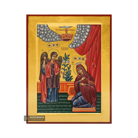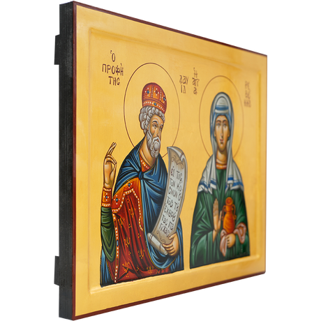 An amazing collection of icons, handwritten according to Byzantine technique and Style. 24k Gold leaves backgrounds on natural wood!
