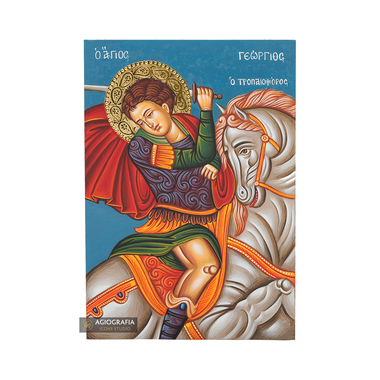 At the back of the icon, a mounting point is installed, accompanied by our Certificate of Authenticity and Quality. All of our artworks bear the studio’s distinctive title and logo. This icon is totally Handmade and though it may have very slight differences from the photos shown.